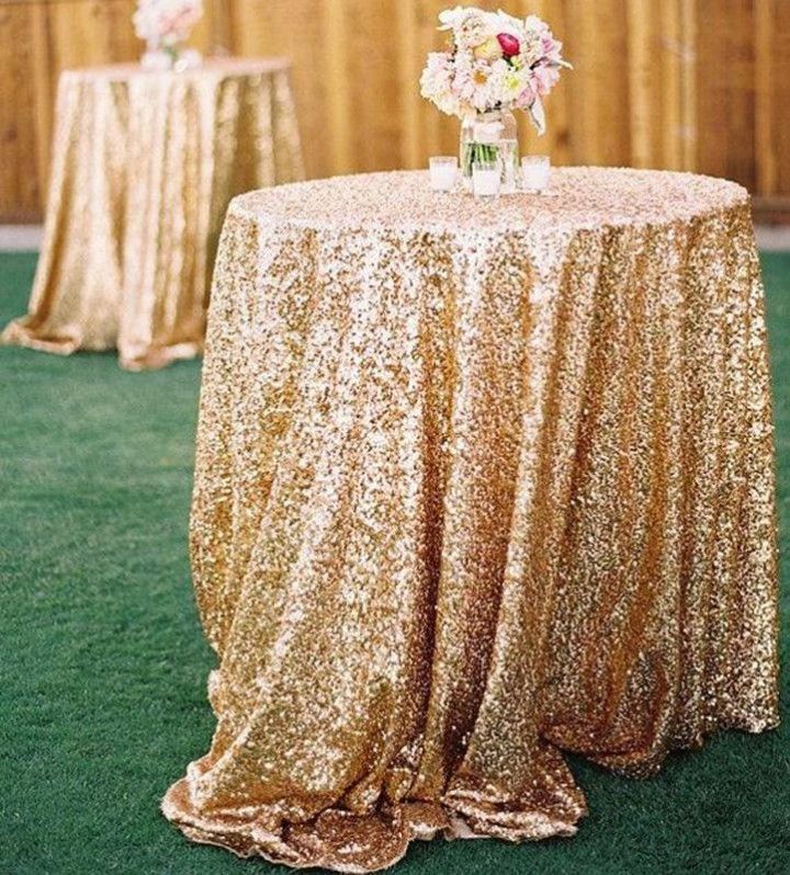 2015 Bling Rose Gold Sequins Wedding Party Round Table Cloth