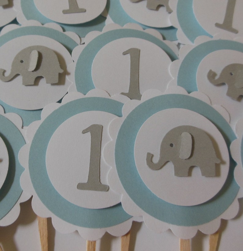 Elephant And 1st Birthday Cupcake Toppers Blue Gray And Etsy