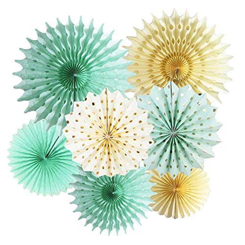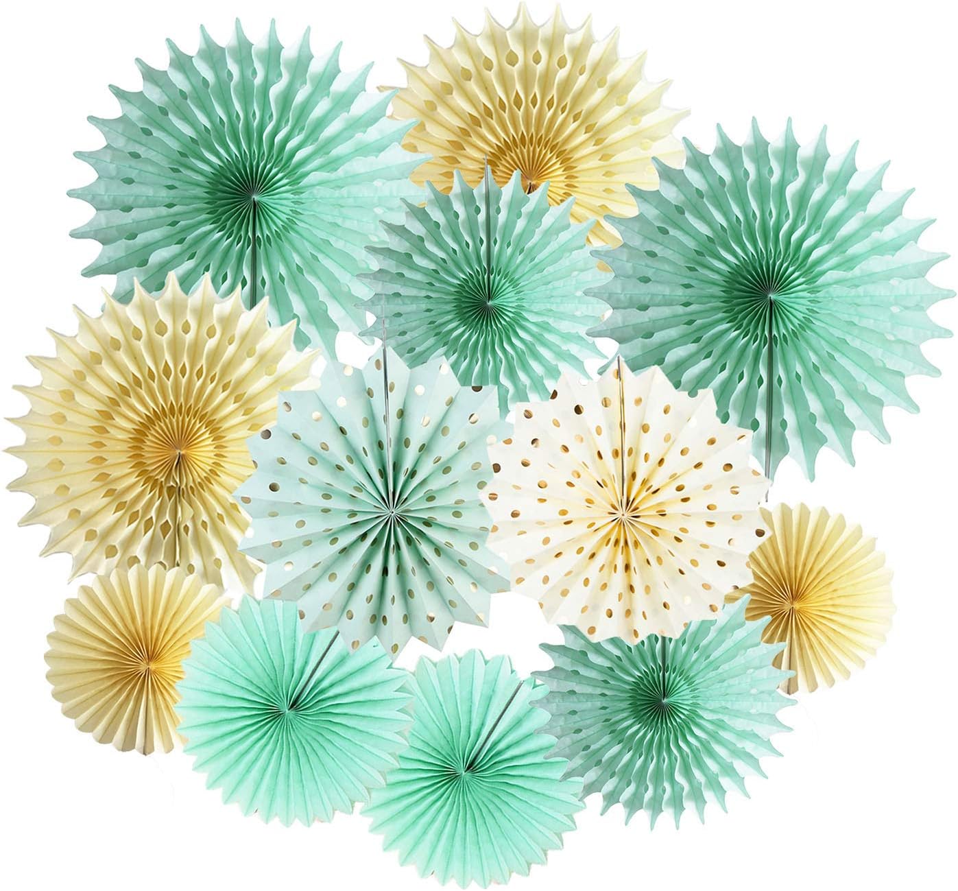Mint Gold Party Decorations Mint Cream Gold Polka Dot Paper Fans