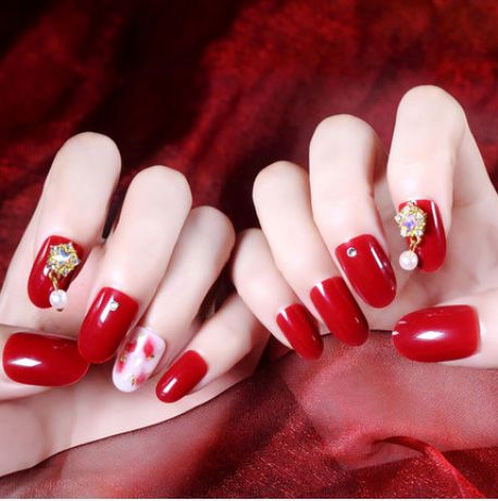Buy Bride Shining Rhinestone Fake Nail Tips Red Color 3d Glitter