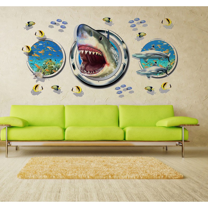 Wonderful Sea World Shark Fish Removable 3d Vinyl Wall Stickers
