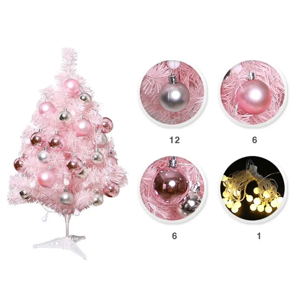 Diy Pink Christmas Tree Fake Pine Tree With String Lamp Artificial