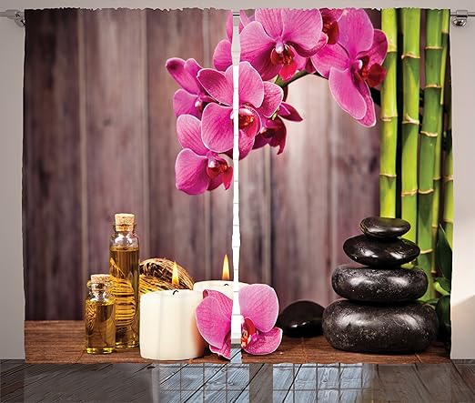 Amazon Com Lunarable Spa Curtains Spa Orchid Flowers Rocks