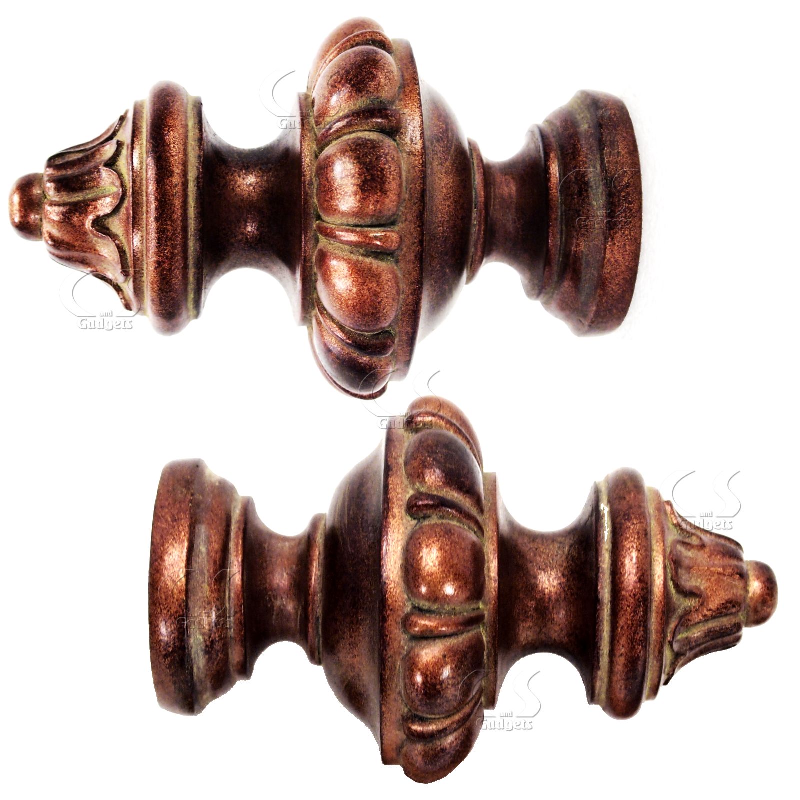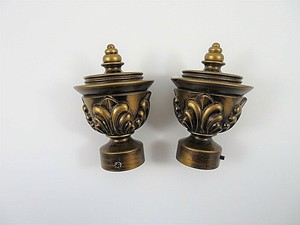 Pair Decorative Drapery Curtain Rod Finials End Caps Ornate Bronze