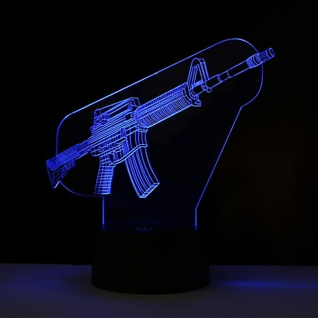 Qiilu Creative 3d Led Night Light Gun Shape Lamp Color Changing