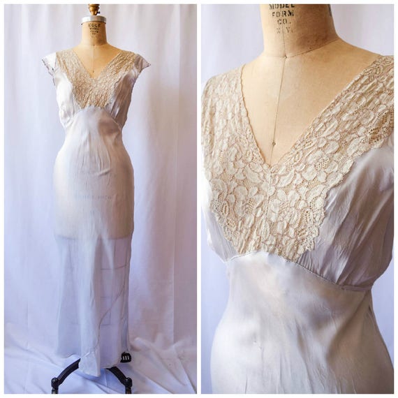 1930s Blue Belle Gown Vintage 30s Bias Nightgown Silvery Etsy