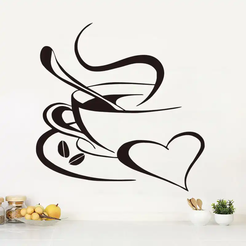 Coffee Cup Heart Vinyl Sticker Dining Room Kitchen Decor Wall